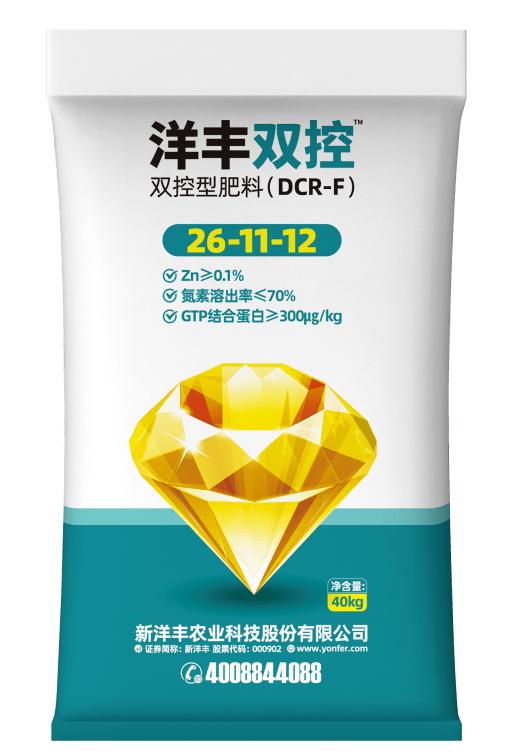 “洋丰双控”复合肥料是基于新洋丰牵头的“十四五”国家重点研发计划课题“沿黄沙性土壤改良与水肥高效产品创制与产业化”创新成果打造的核心技术产品,其核心在于DCR双控双调技术。“双控”即通过物理和化学两种途径有效延缓氮、磷、钾等养分的挥发与流失,大幅延长肥效周期,充分匹配作物全生育期均衡营养需求;“双调”则通过功能物质同步调节土壤根系微环境和作物生长,提高根系对养分的吸收能力和作物对于不良环境的抗性,为作物高产筑牢营养根基,实现“一次施肥,全程护航”。